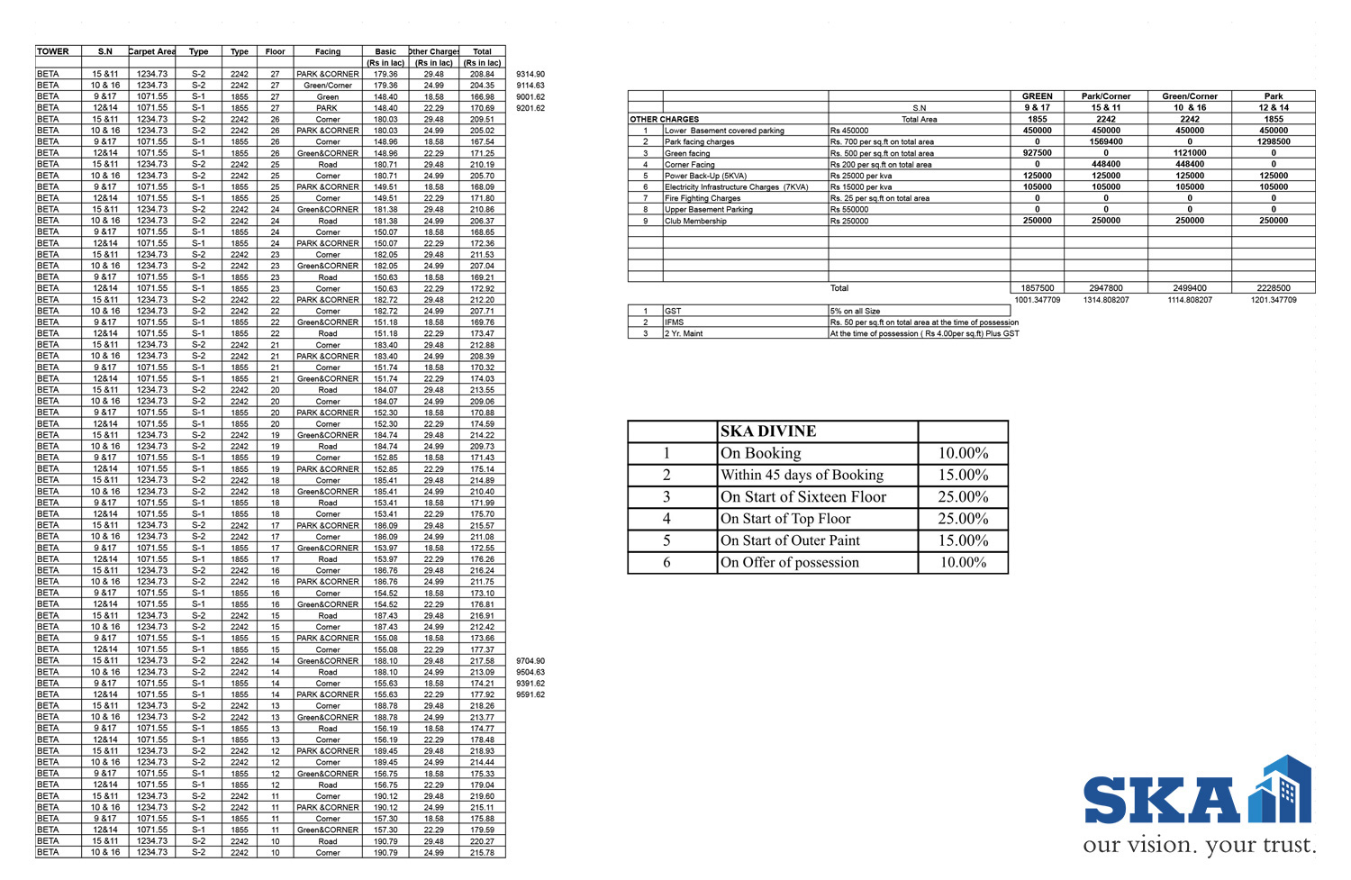 Ska Divine 3/4BHK is being constructed with the use of ultra-modern civil technologies and highly skilled civil engineers. The site is three sides open which ensures continuous gusts of cool breeze inside the residential campus. All floors will have attached spacious balconies and a fast, high-volume lift. There will be the availability of modern amenities viz. swimming pool, garden, park, airy and sunny flats, jogging track, plenty of natural wealth, covered and spacious vehicle parking, clubhouse, spa, gym, sports courts, playground, kids play area, continuous water and power supply, hi-tech gated securities and much more. Let’s see this property in the search history when and how you made a day tough while hunting for your dream address in Delhi NCR. Grab your splendid offers exclusively maintained by you. The property buyers and investors will have a golden chance to live with an elite community amidst this iconic city of India.
