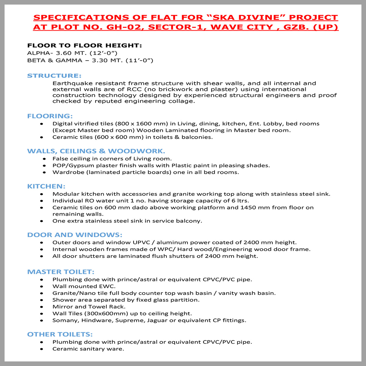 A blend of ultra-luxury real estate properties is being constructed on huge acres of land at Wave City, Ghaziabad by the Ska Group, of companies in the name of Ska Divine. This project is ongoing and available in 3 & 4 BHK luxurious residential apartments which will have customized sizes ranging from 1855 to 2962 sq. ft. The proximity to numerous amenities and livable items is the ultimate power pack of this project which ensures a comfortable, green, and clean life. Here, you find excellent tints of beautiful nature which is being driven by the City’s green and clean mission and run by govt. authority. A cloud of global surroundings includes malls, shops, hospitals, metro, new/old bus stands, public and private conveniences, food courts, community halls, hotels, schools, etc. The best and most desirable property with loaded trendy amenities is only with such modern properties in the prime location. It will make your day delighted when your dream comes true.